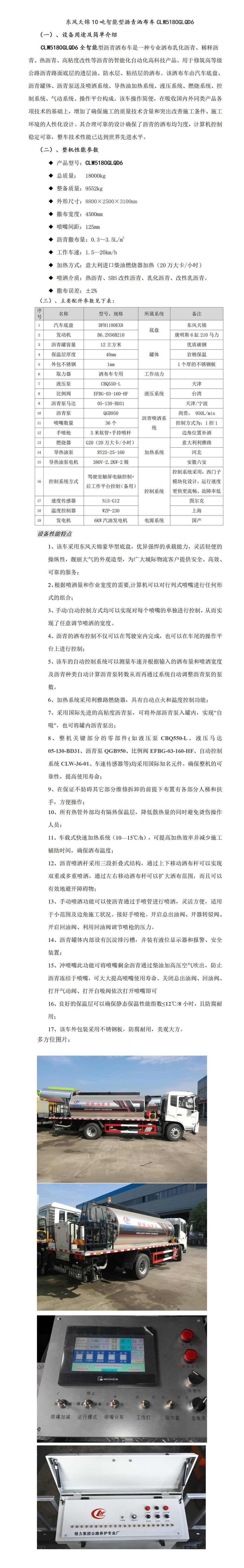 • 東風(fēng)天錦10噸瀝青灑布車(智能型)程力威牌CLW5180GLQD6型瀝青灑布車