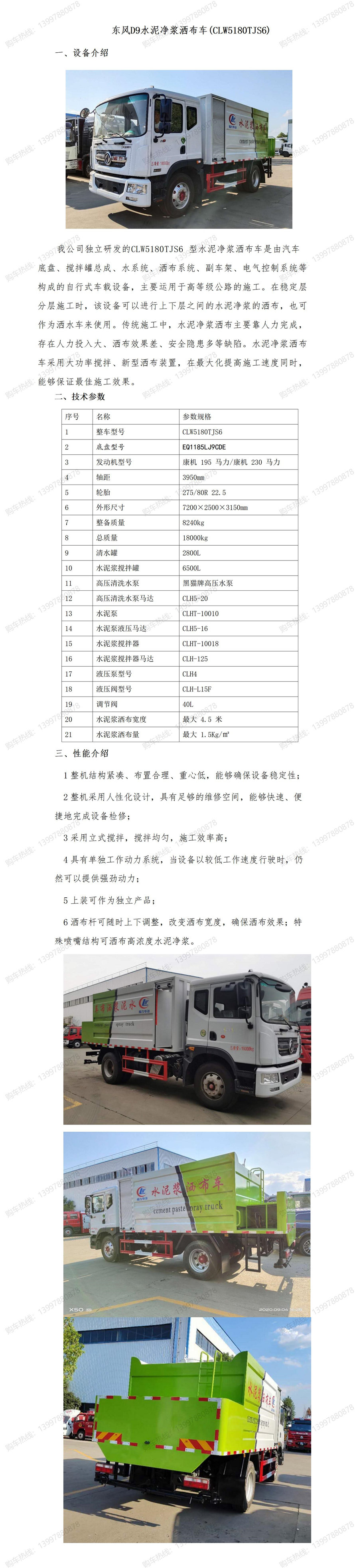 • 東風D9水泥凈漿灑布車(程力威牌CLW5180TJS6型水泥凈漿灑布車)
